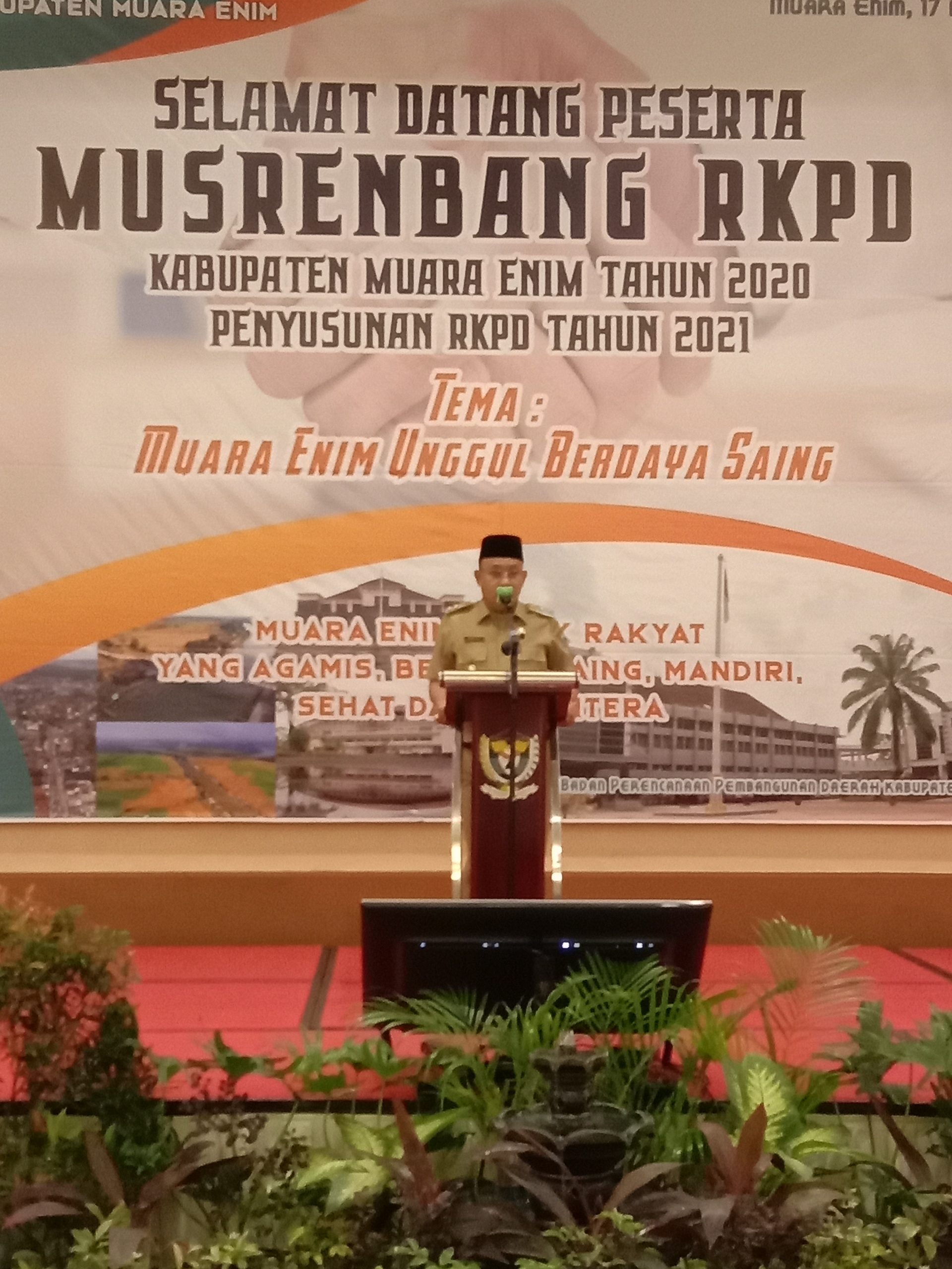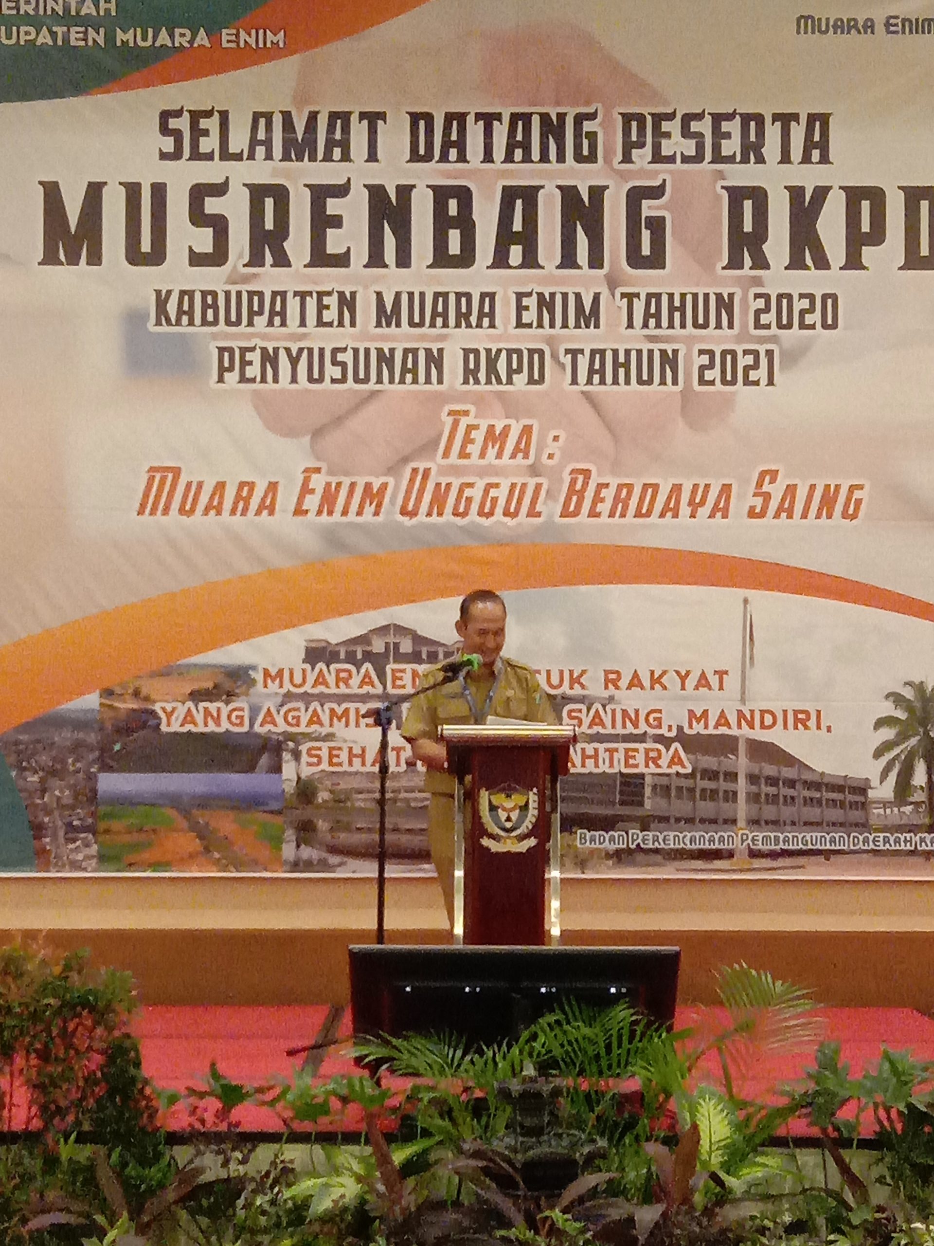Plt. Bupati Muara Enim, H. Juarsah, S.H menyampaikan bahwa dalam penyusunan pembangunan tahun 2021 mendatang ada 6 prioritas pembangunan diantaranya : 1. Penanggulangan kemiskinan, dan Pemantapan Infrastruktur Dasar, 2. Pemerataan layanan pendidikan, kesehatan yang berkualitas, 3. Pengembangan UMKM Unggul dan Industri Kreatif, 4. Penguatan ketahanan pangan 5. SDM Unggul dan Pelayanan Prima, 6. Pengelolaan Lingkungan Hidup dan Penanggulangan Bencana.
