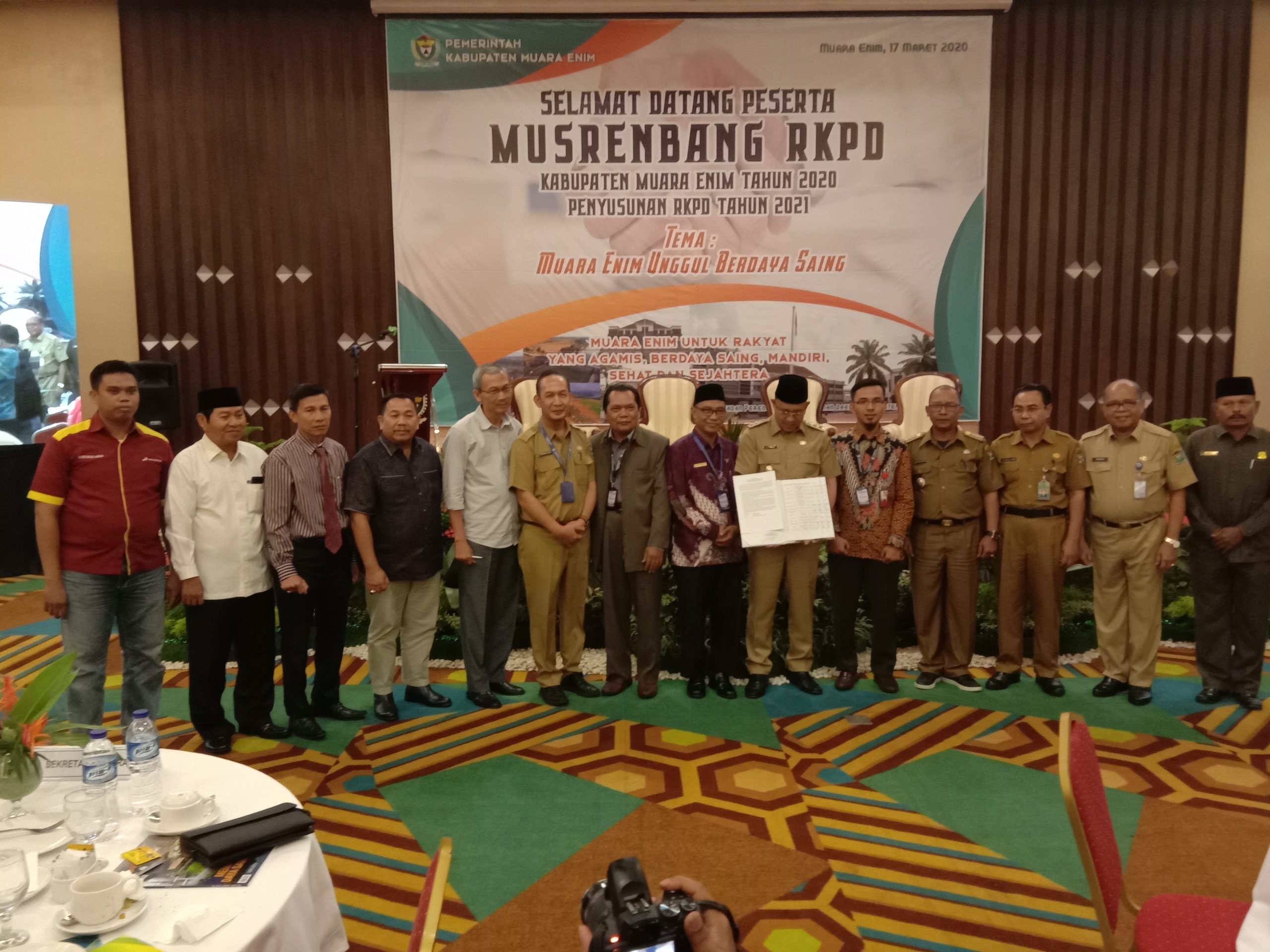 “Hasil yang diharapkan dari pelaksanaan Musrenbang ini diharapkan antara lain Menetapkan dan menyepakati arah kebijakan dan Prioritas Pembangunan serta pagu indikatif tahun 2021, Kegiatan prioritas dengan tolok ukur capaian kinerja menurut sumber pembiayaan, baik APBD, APBD Provinsi dan APBN,” lanjutnya”Sesuai dengan aturannya kita telah melaksanakan Musrendes, Musrenkec dan forum perangkat Daerah serta ditambahan dari masukan dari hasil reses anggota DPRD Kabupaten Muara Enim.