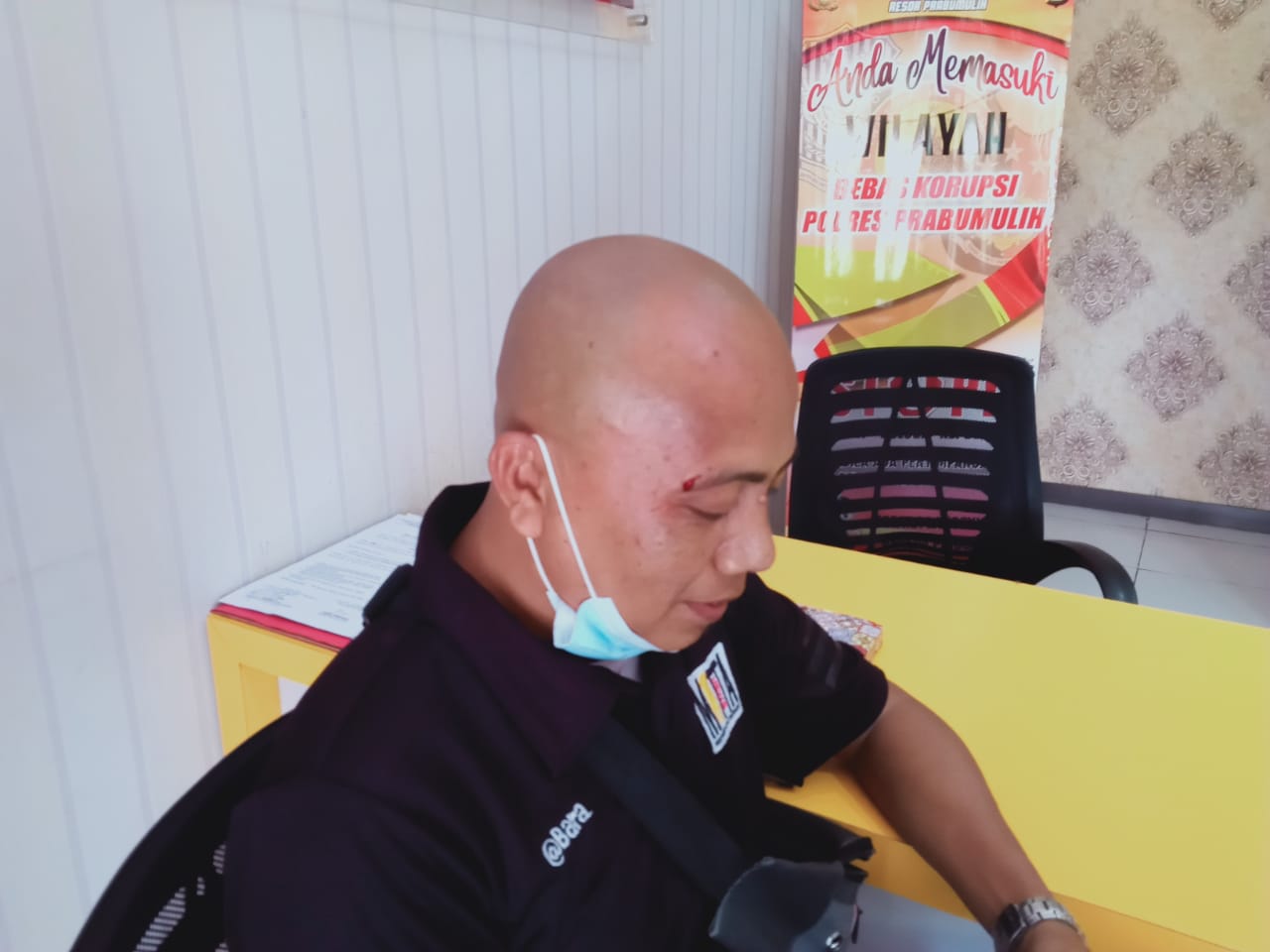 “Aku tegur pertamo, dio (terlapor Sa) tidak bereaksi. Aku tegur keduo kali, agar nurunke kakinyo. Disitulah, dio mukul aku keno pelipis mato bedarah dikit,” ungkap Andre Bara, ketika didampingi melaporkan peristiwa yang dialaminya ke petugas SPK Polres Prabumulih.