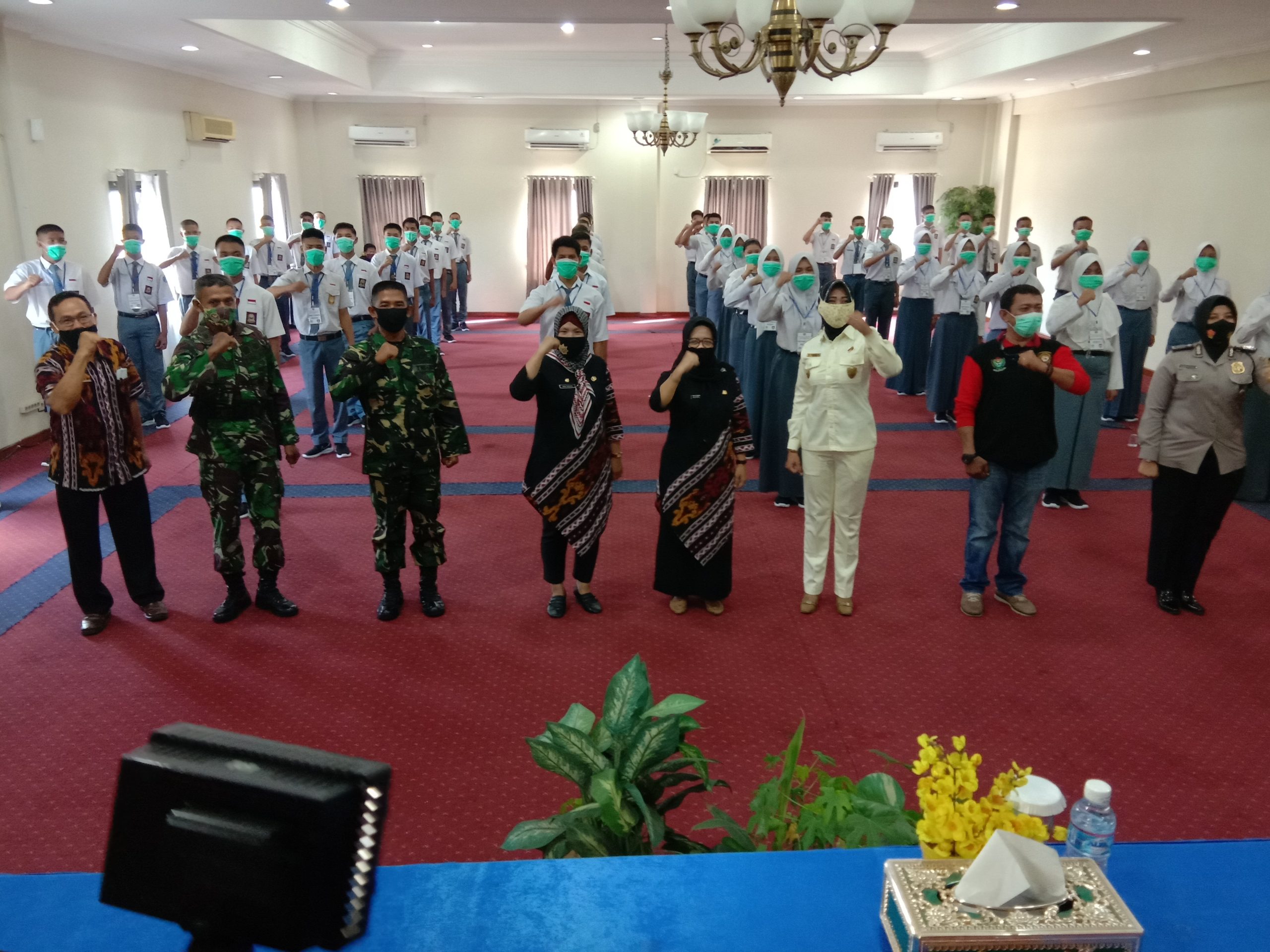 Muara Enim, kilasan.net-Sebanyak 50 orang siswa siswi yang berasal dari sekolah menengah tingkat atas (SLTA) dalam Kabupaten Muara Enim selama 10 hari dari tanggal 9-18 Agustus mengikuti Diklat Pelatihan Pasukan Pengibar Duplikat Bendera Pusaka (PASKIBRAKA) tahun 2020 yang dibuka secara resmi pada Minggu (09/08/20) Di balroom Hotel Serasan Sekundang Muara Enim oleh Kepala Dinas Pemuda Olahraga Kabupaten Muara Enim yang diwakili oleh Kabid Pengembangan Pemuda Nina Deslina, S.STp, M.Si didampngi Kasi Organisasi Pemuda dan Pramukaan (OKK) Dedy Arfian, S.Sn dan Kasi Kewirausahaan Pemuda Insprastruktur Nurlita Khusnawati, SE serta Kasi Kepimpinan dan Kepeloporan Akhiruddin, S.Pd, Tim medis Risan Jaya dan Dokter Yenny.