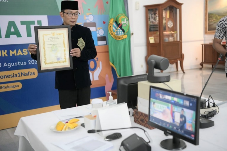 Atas dukungan para stakeholders, Gubernur Jabar Ridwan Kamil mengapresiasi dengan simbolis memberikan sertifikat kepada donatur yang menyumbangkan oksigen. Mereka yakni BI Jawa Barat, Kadin Jabar, Bursa Efek Indonesia Jabar, Forum BUMD Jabar, PT Aplikasi Karya Anak Bangsa, PT Amerta Indah Otsuka, PT Star Energy, dan PT Siam Cement Group.