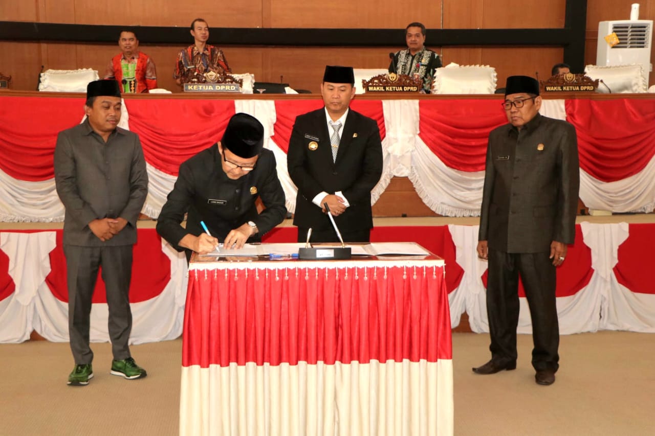 Muara Enim, kilasan.net – Pj. Bupati Muara Enim, H. Henky Putrawan, S.Pt., M.Si., M.M., bersama DPRD Kabupaten Muara Enim mengesahkan