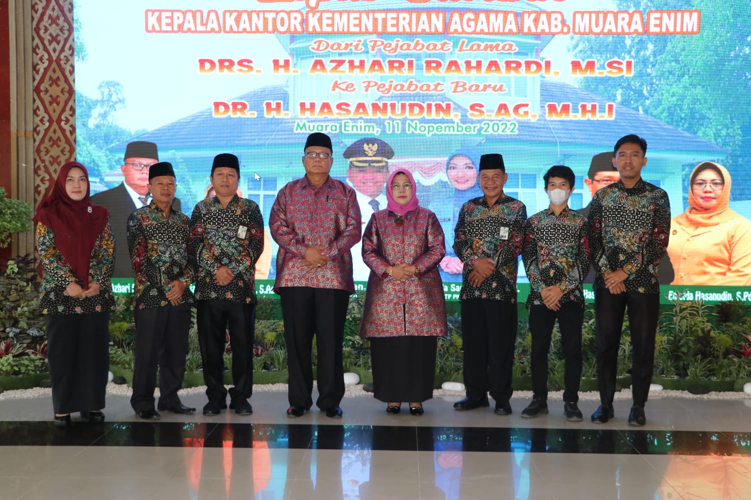Selanjutnya kepada Dr H Hasanudin, S.Ag MHI., Pj. Bupati mengucapkan selamat datang dan selamat bertugas di Kabupaten Muara Enim. Kepada Dr. H. Hasanudin, S.Ag.,MHI yang sebelumnya bertugas sebagai Kepala Kantor Kemenag Kabupaten Empat Lawang, Pj. Bupati juga berharap semoga kedatangannya dapat memberikan kontribusi dan kinerja yang lebih baik untuk Kabupaten Muara Enim. “Dengan pergantian pucuk pimpinan tersebut, Kurniawan menginginkan antara Pemkab Muara Enim dengan Kantor Kemenag Kabupaten Muara Enim bisa saling bersinergi untuk mewujudkan Kabupaten Muara Enim yang Agamis serta mendukung terwujudnya pelayanan yang semakin mudah, cepat dan murah bagi masyarakat,” harap Kurniawan.
