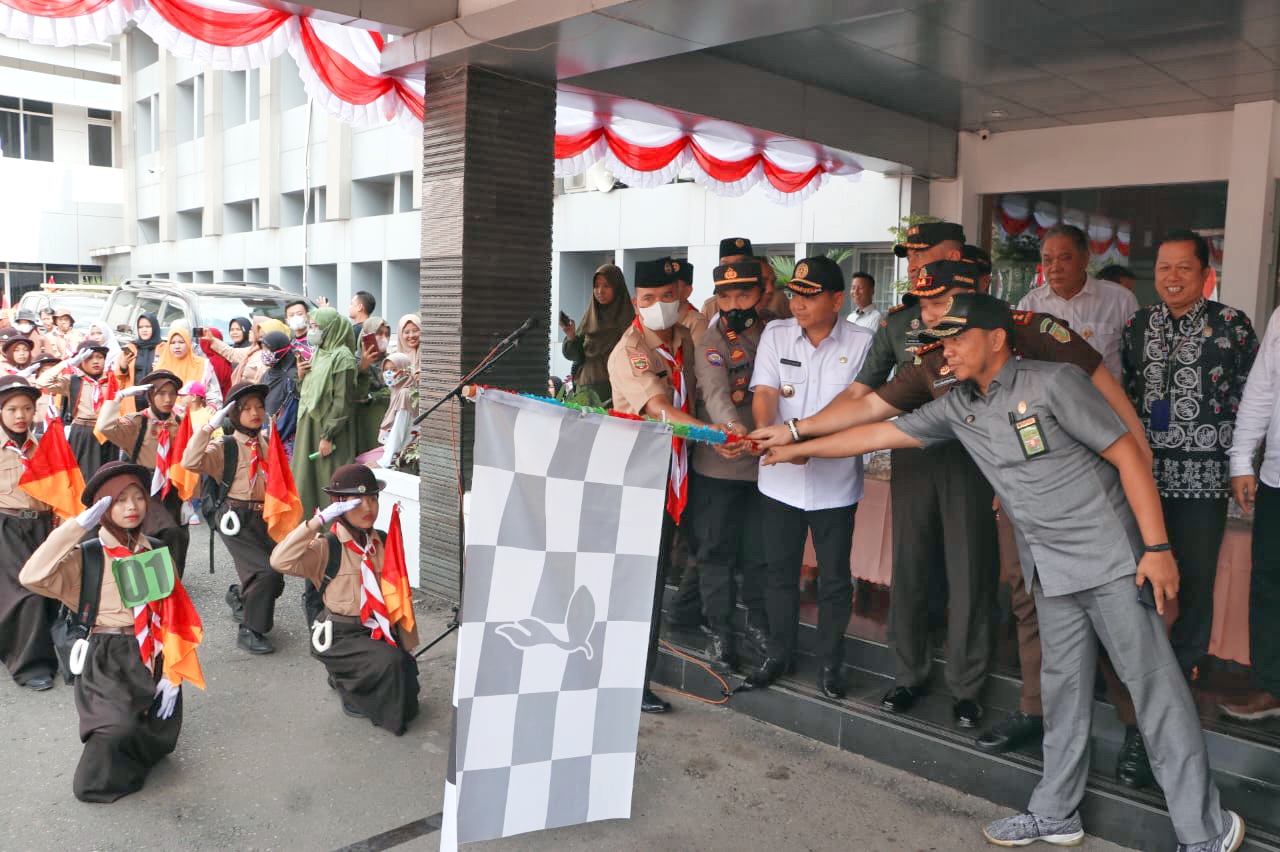 Muara Enim, kilasan.net – Pj. Bupati Muara Enim Kurniawan, AP., M.Si., @kurniawan.riduan Rabu (10/08/22) bertempat di Halaman Kantor Bupati Muara Enim, meresmikan lomba gerak jalan Pramuka yang diikuti pelajar tingkat SD, SMP hingga SMA dalam Kecamatan Lawang Kidul, Muara Enim, Ujanmas dan Gunung Megang, yang berjumlah 79 regu. Selain lomba gerak jalan Pramuka, kegiatan yang digelar dalam rangka memperingati HUT RI ke-77 tersebut, dimeriahkan juga dengan perlombaan tradisional, seperti bakiak, engrang dan lari balok bertempat di Lapangan Merdeka Muara Enim.