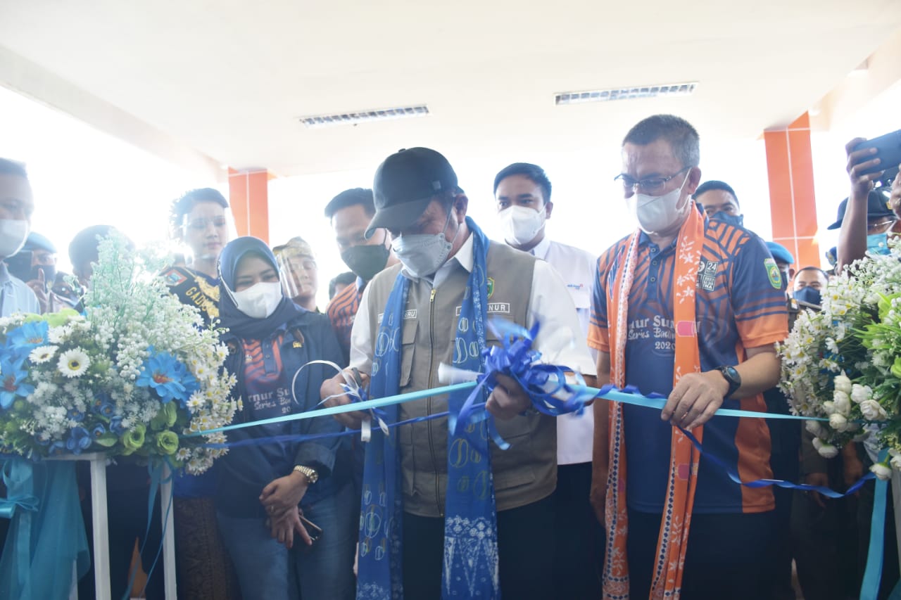 Senior Manajer CSR PTBA, Hartono disela-sela peresmian GOR Badminton dan Opening Gubernur Sumsel Super Series Badminton di Pagar Alam, menyampaikan rasa syukurnya, sehubungan dengan telah selesainya pembangunan sekaligus peresmian GOR Badminton yang diberi nama GOR Pancasila oleh Gubernur Sumatera Selatan, Herman Deru, Senin (21/06/2021)