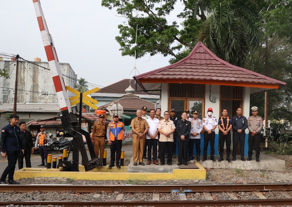 Penjabat (Pj) Bupati Muara Enim H Ahmad Rizali meresmikan 4 unit pos dan palang pintu kereta tersebut pada Senin (9/10/23).