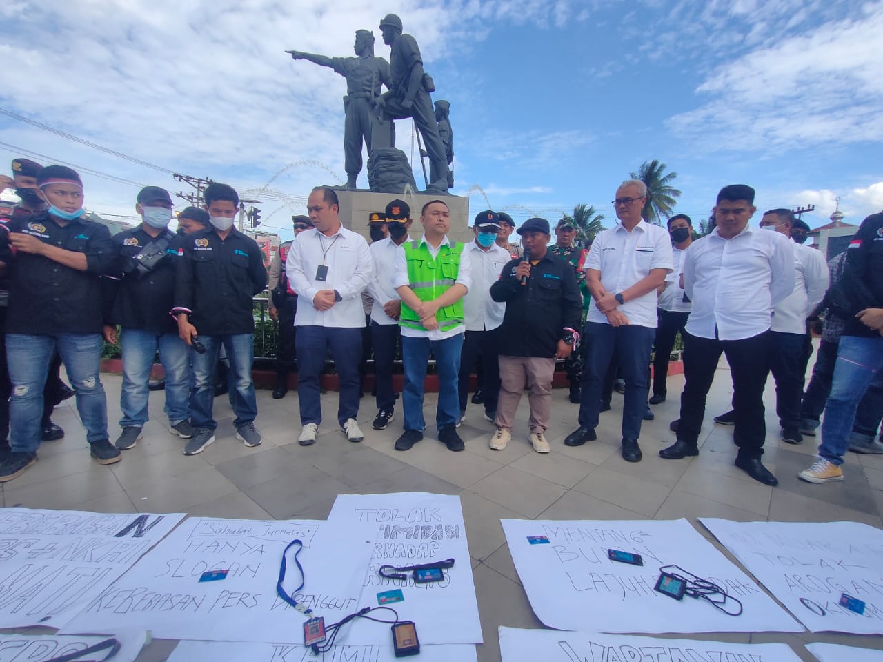 Dalam orasinya, secara bergantian Siswanto, Hafizul Ahkam dan Andi Candra serta pengurus lainnya bergantian menyampaikan orasi yang mengecam atas intimidasi dan pelarangan peliputan wartawan yang dilakukan oknum karyawan PTBA tersebut. “Kita dilindungi oleh undang-undang dan bagi yang melanggar atau menghalangi dapat dipidana penjara 2 tahun atau denda Rp.500 juta,” terangnya.