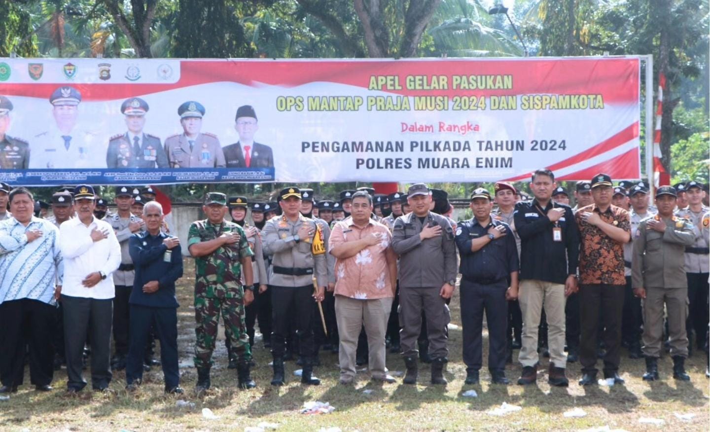 Muara Enim, kilasan.net – Pemerintah Kabupaten Muara Enim melalui Sekretaris Daerah Ir. Yulius, M.Si., mengikuti Apel Gelar Pasukan Operasi Mantap Praja 2024 dan Simulasi Sistem Pengamanan Kota (Sispamkota) yang digelar Polres Muara Enim di Lapangan Merdeka Muara Enim, Jumat (23/08/24).