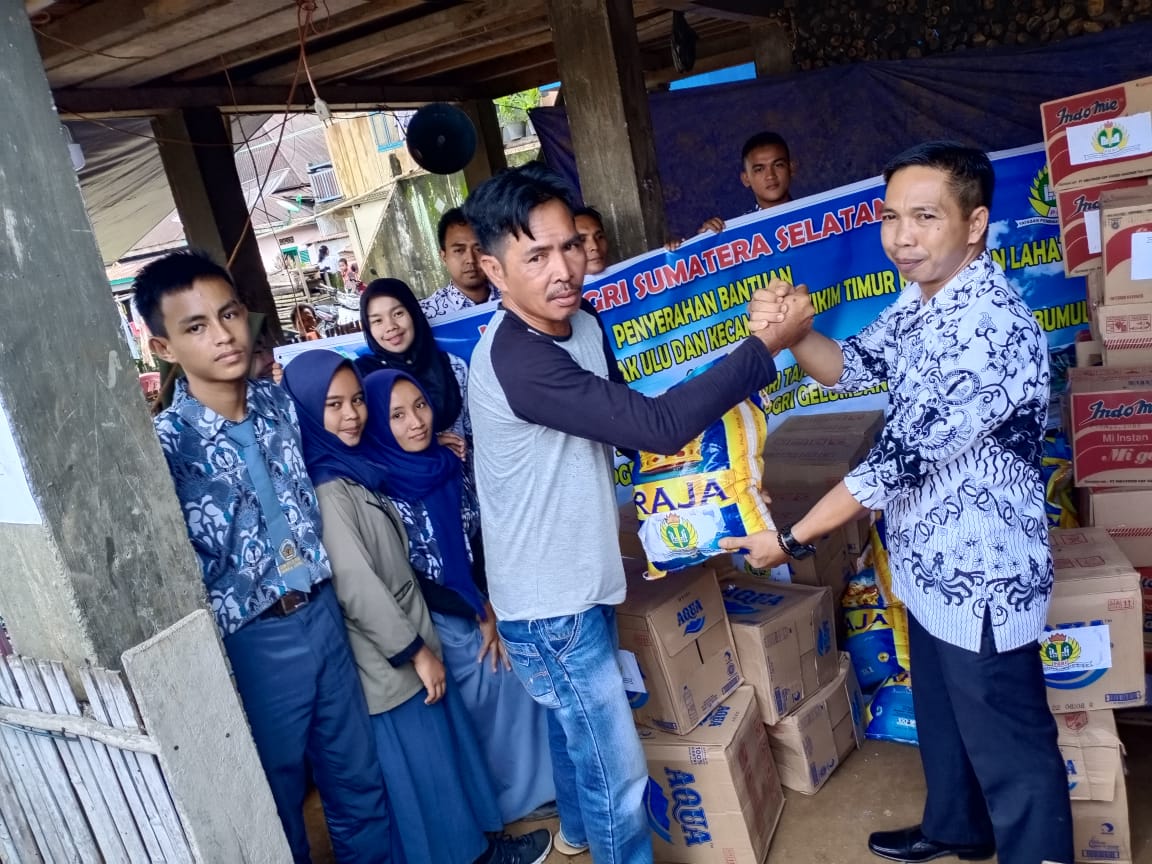 Dipimpin oleh Kepala Sekolah SMK PGRI Muara Enim dan didampingi Wakil Kepala Sekolah bidang kurikulum, Wakil Kepala Sekolah bidang kesiswaan dan humas beberapa guru serta pengurua OSIS menyerahkan bantuan kepada korban banjir bandang di 2 lokasi yakni Kecamatan Mulak Sebingkai dan Kecamatan Kikim Timur.